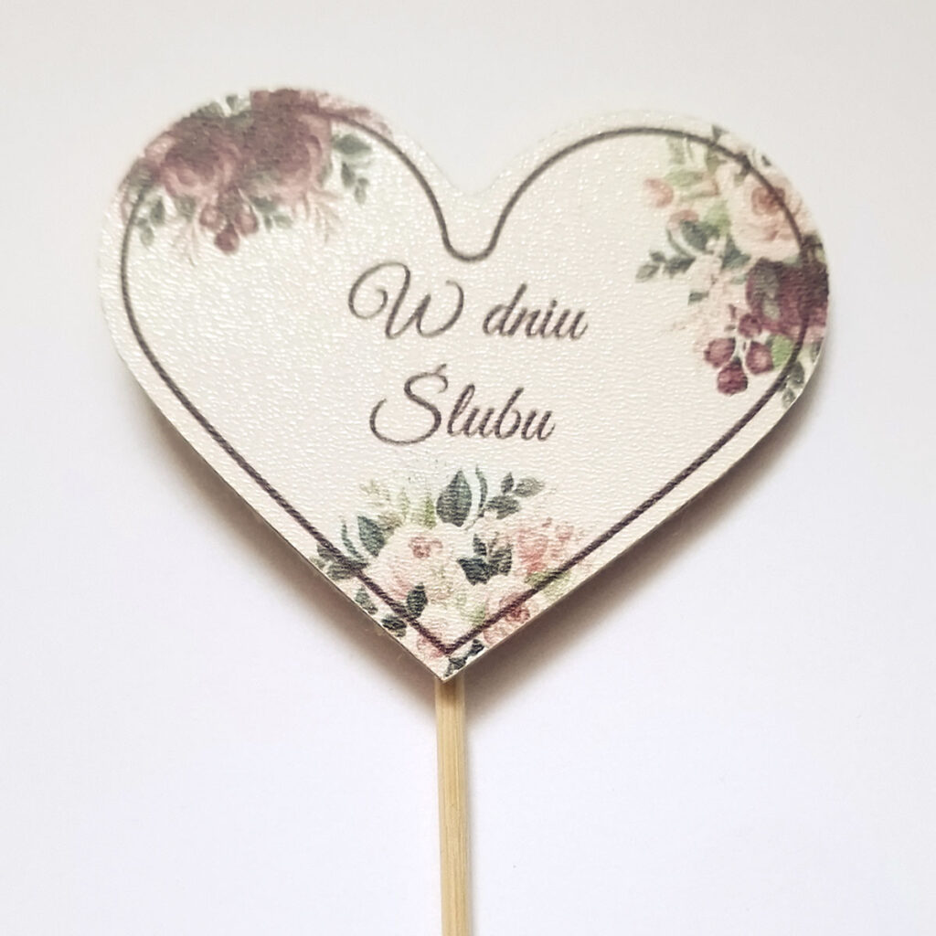 Topper wykonany ze sklejki z nadrukiem.