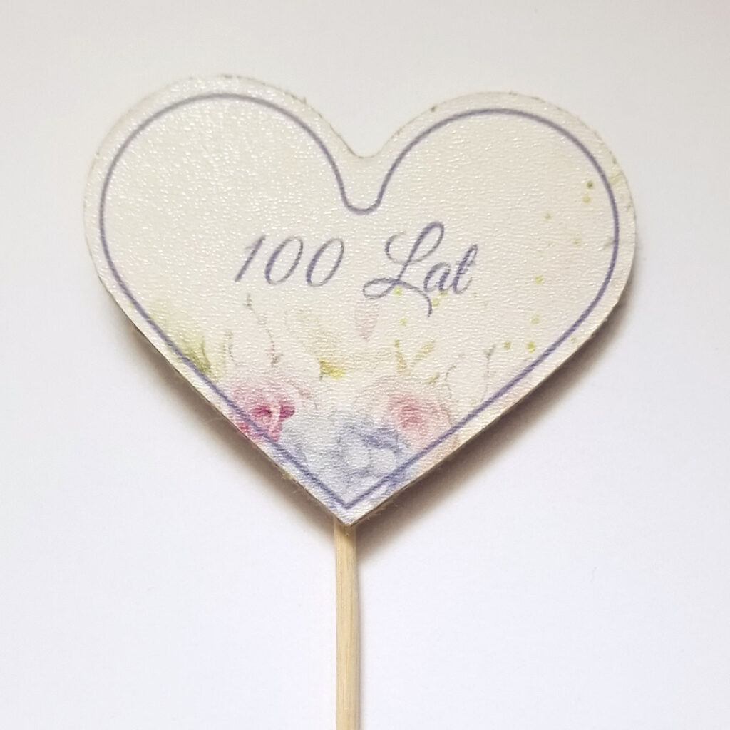Topper wykonany ze sklejki z nadrukiem.
