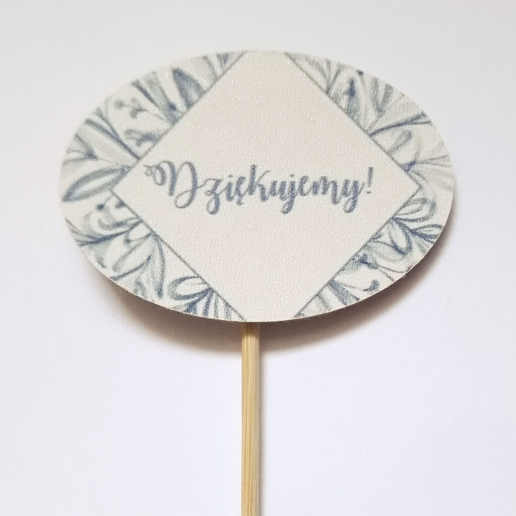 Topper wykonany ze sklejki z nadrukiem.