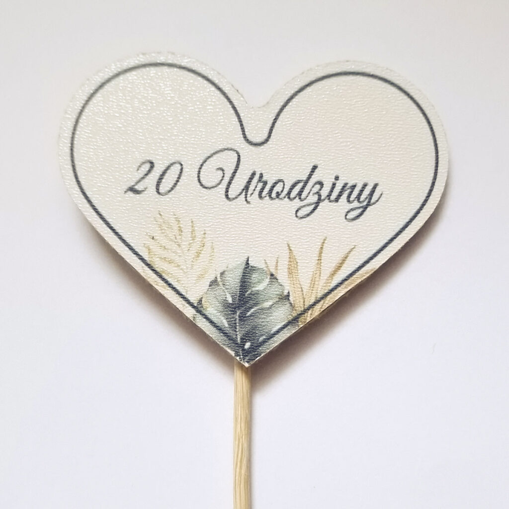 Topper wykonany ze sklejki z nadrukiem.