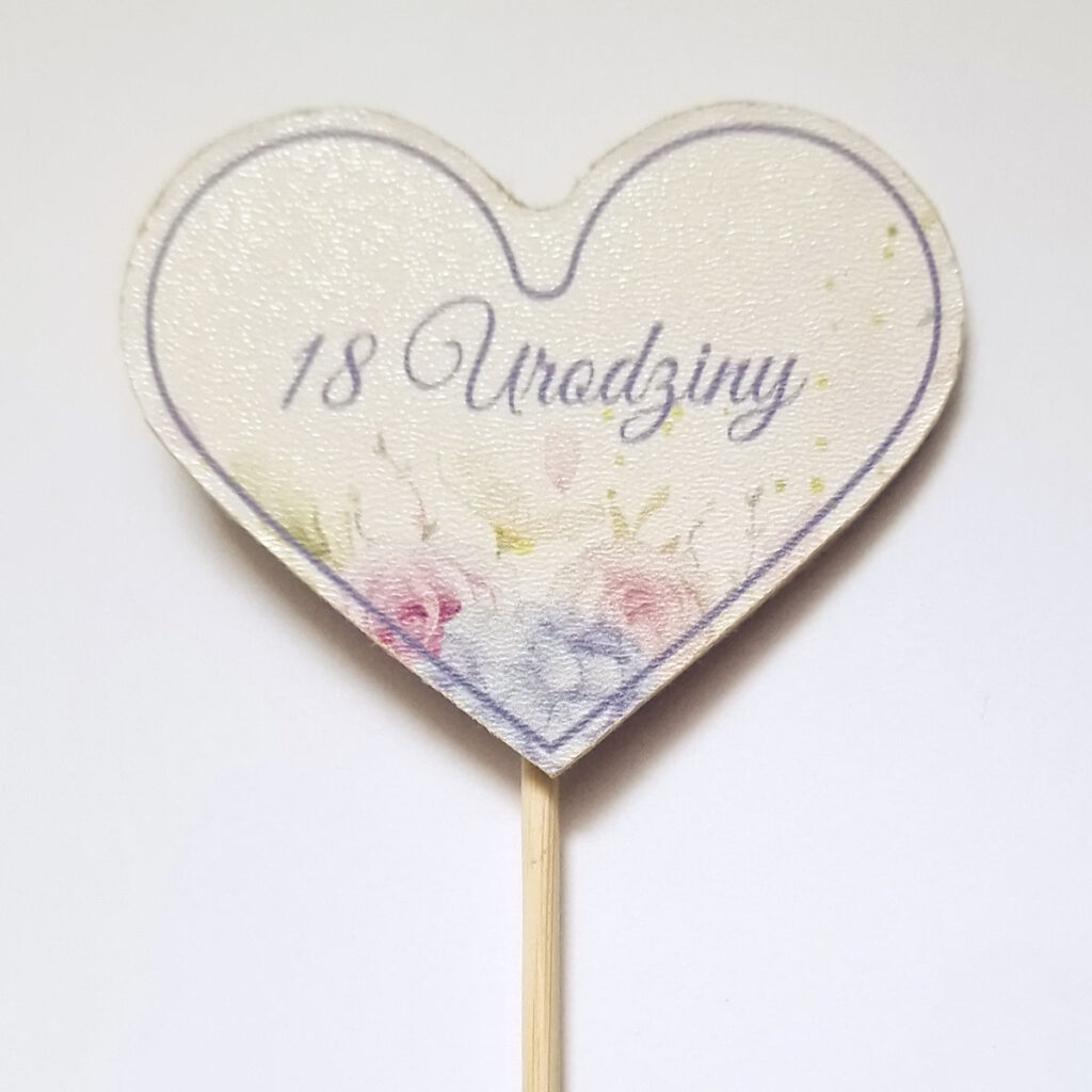 Topper wykonany ze sklejki z nadrukiem.