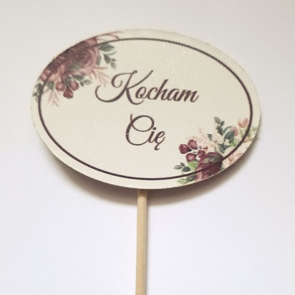 Topper wykonany ze sklejki z nadrukiem.